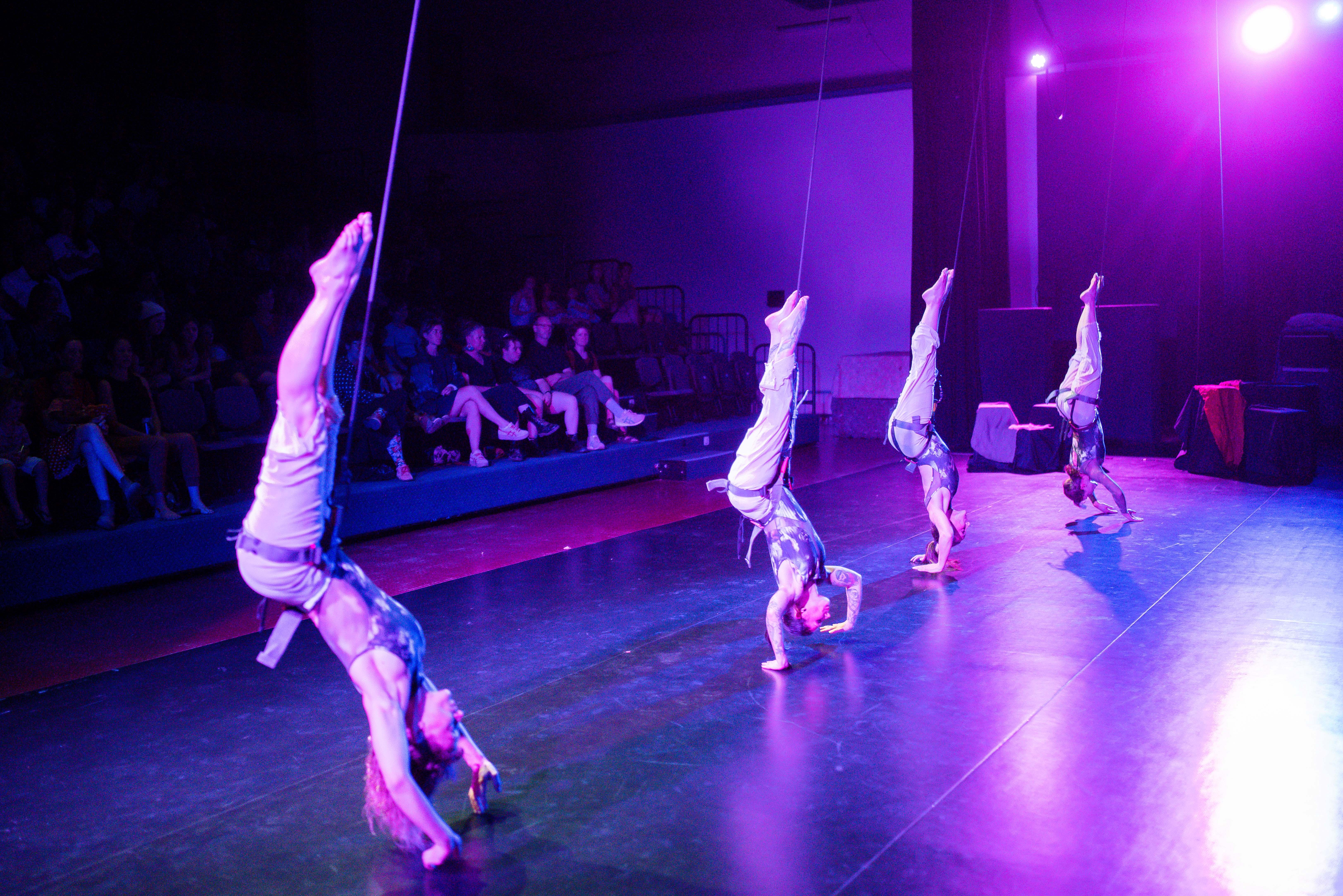 Come to the Edge was presented twice at the Centralian Senior College Theatrette, to audiences of over 150 people each show. Four dancers took to the stage in what was a whimsical and gentle exploration of the poem. The performance built to the climax which involved all four dancers lifting off the ground and ‘flying’/ dancing in harnesses. Their poetic float and drift mesmerised audiences.